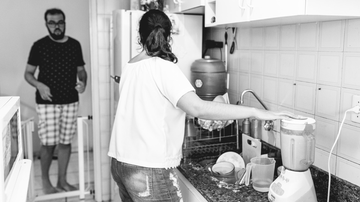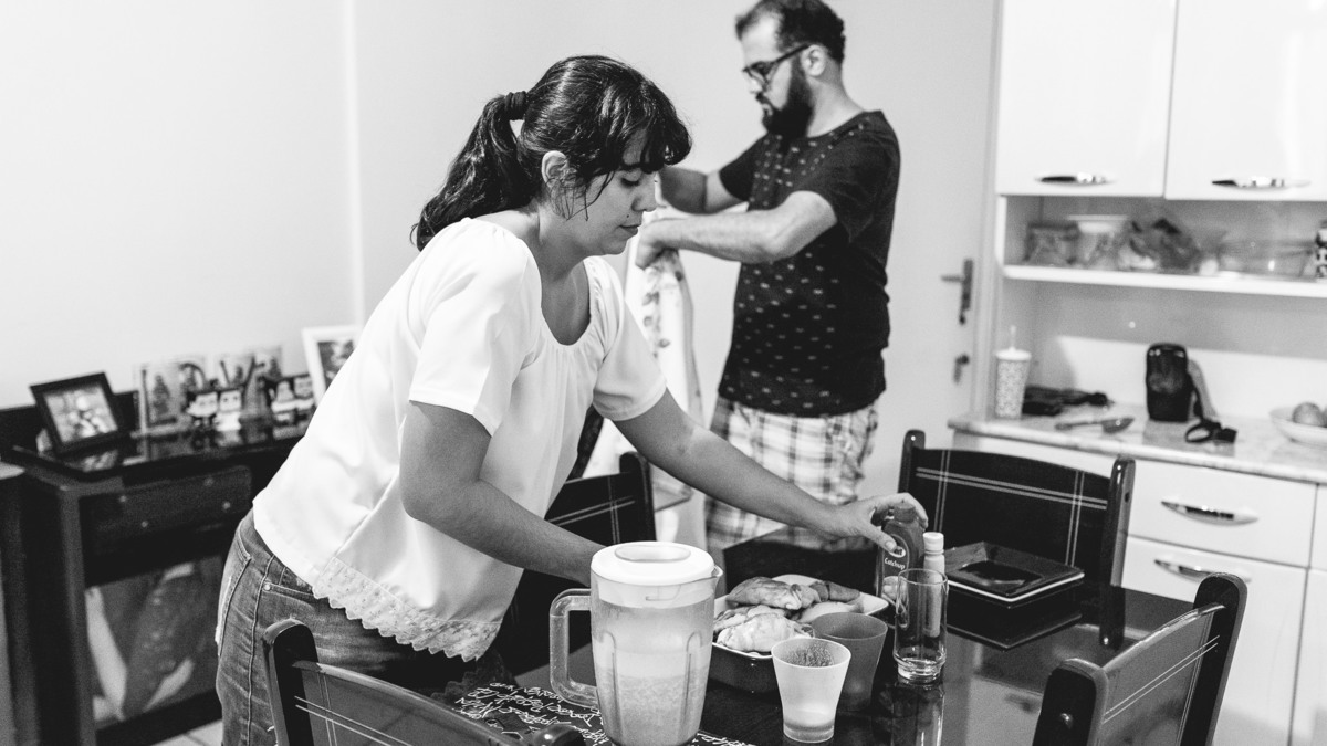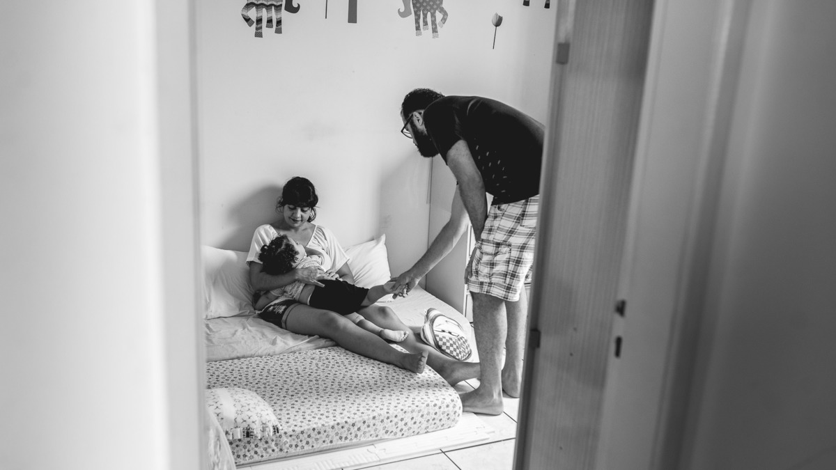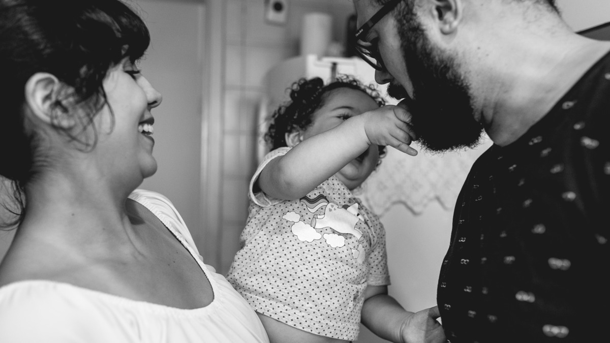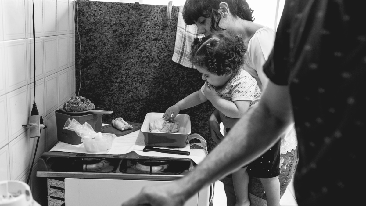 Numa tarde chuvosa de domingo não deu para descerem pro parquinho do prédio que a Rafaela tanto gosta, então o jeito foi se divertirem dentro do apartamento mesmo. Enquanto a pequena brincava com a mãe entre uma mamada e outra, o papai foi para a cozinha. Rodolpho me confidenciou que cozinhar tem sido um dos seus hobbies preferidos. Nesse dia ele fez esfirra de carne, com direito a massa fresca feita por ele. Se divertindo na cozinha, Rafa teve interesse em experimentar limão e nos rendeu altas risadas com suas caretas. Quando o lanche ficou pronto se reuniram em volta da mesa para mais um momento em família. Rafaela muito sapeca só quis ficar com os pés em cima da mesa. Katarina disse que foi a primeira esfirra que a pequena comeu. E assim , depois do lanche me despedi dessa família com a certeza de que o importante são esses pequenos momentos e o amor que eles tem um pelo outro são de encher o coração de qualquer pessoa.